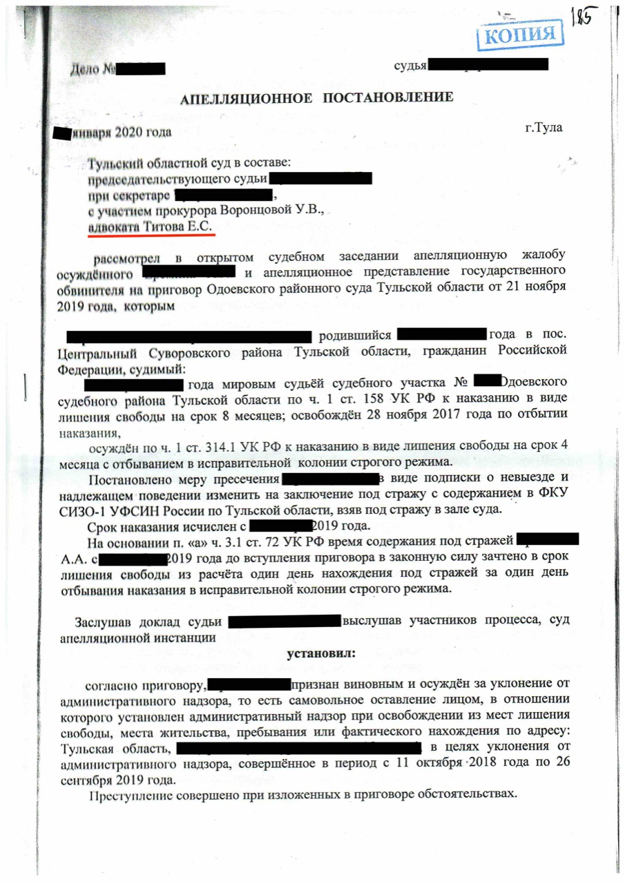 Апелляционная жалоба по уголовным делам