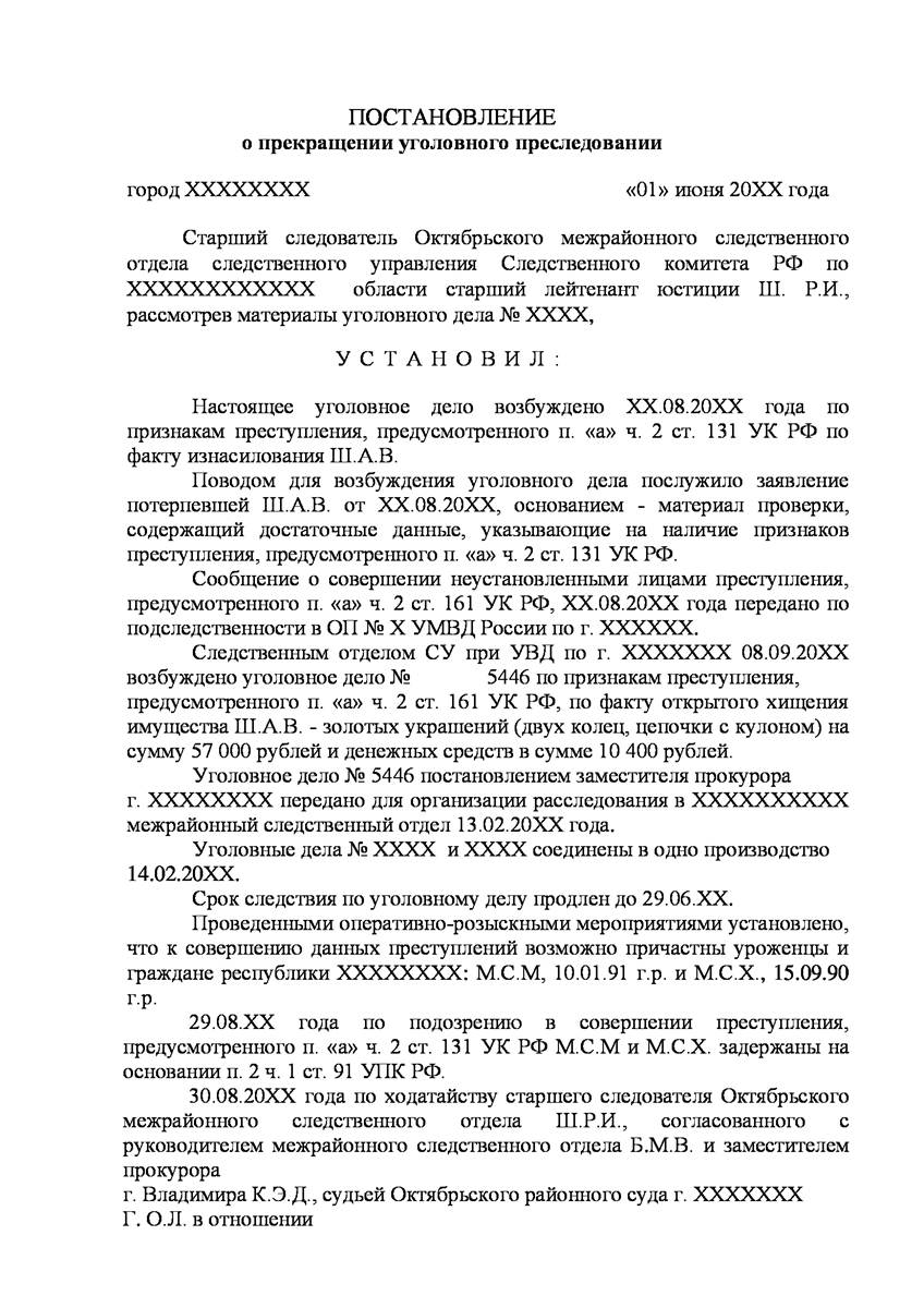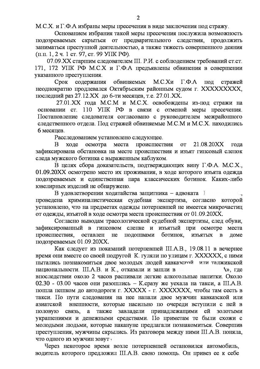 Адвокат в Воронеже добился прекращения уголовного дела на стадии предварительного расследования по реабилитирующим основаниям в отношении двух граждан иностранного государства обвиняемых органами предварительно следствия в совершении преступления предусмотренного п. «а» ч.2 ст.131 УК РФ (изнасилование совершенное группой лиц) и п."а" , п."г" ч.2 ст.161 УК РФ (грабёж), наказание за которое предусматривает лишение свободы от восьми до пятнадцати лет, то есть преступление, которое в соответствии с ч.5 ст.15 Уголовного Кодекса Российской Федерации отнесено к категории особо тяжких преступлений.